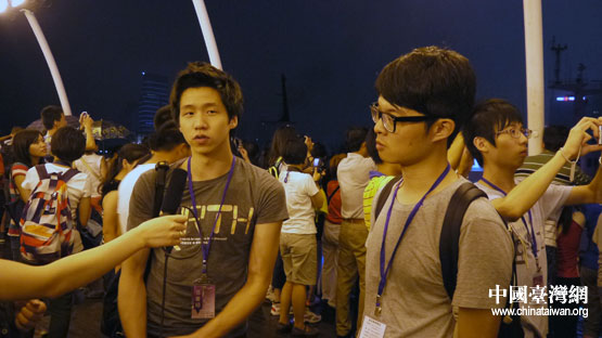 淡江大學(xué)企管學(xué)系張壹翔是臺(tái)灣學(xué)生團(tuán)第六組組長(zhǎng),他多才多藝,最愛(ài)張學(xué)友的歌!白x萬(wàn)卷書(shū)不如行萬(wàn)里路,我想透過(guò)這次活動(dòng)欣賞到大氣磅礴的大陸風(fēng)光,更能了解中華文化的博大精深、拓展心胸,也希望能交到許多志同道合的好友,充實(shí)人生的旅途!眻D為張壹翔接受本網(wǎng)記者采訪。(中國(guó)臺(tái)灣網(wǎng) 李丹 攝)