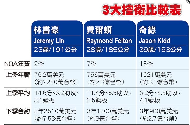日前ESPN.com專欄作家斯坦恩(Marc Stein)曾說:“就算別隊出10億美元(約300億臺幣)挖林書豪,尼克斯也會跟!币虼饲疤飚敾鸺岢龈哳~報價時,紐約媒體仍預言尼克斯將忍痛跟進,但昨卻出現(xiàn)戲劇性變化,尼克斯透過先簽后賣方式,從拓荒者換來曾效力于尼克斯的控衛(wèi)費爾頓,包括費爾頓經(jīng)紀人和NBA內(nèi)部消息來源,昨都證實了這項交易。