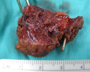 吳明哲醫(yī)師表示,在患者腹部開了3個小洞,發(fā)現(xiàn)肝的左外葉患部有一根約2厘米細長異物,被包在膿瘍內(nèi),順利切除取出約1/5的肝臟,證實是一根堅實的魚刺。