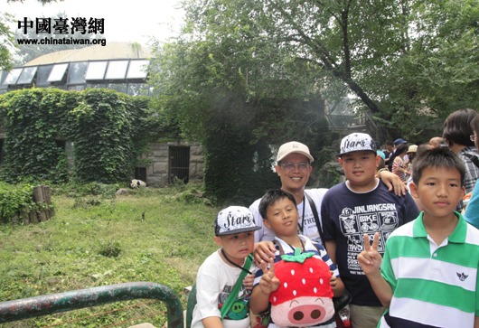 小朋友跟喜愛的大熊貓合影留念。(中國(guó)臺(tái)灣網(wǎng) 黃艷艷 攝)