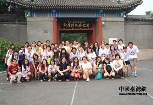 臺(tái)灣青年學(xué)生大陸參訪團(tuán)及志愿者在宋慶齡故居門前合影留念。(中國臺(tái)灣網(wǎng) 孟雅詩 攝)