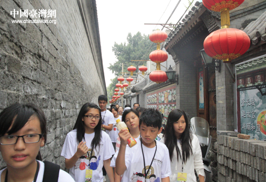臺(tái)灣少數(shù)民族小朋友們行走在后海附近的胡同里。(中國臺(tái)灣網(wǎng) 黃艷艷 攝)