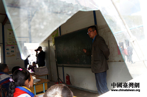 透過(guò)破碎的窗戶(hù)看到講課的老師和認(rèn)真聽(tīng)課的孩子們(中國(guó)臺(tái)灣網(wǎng) 羅旭婷 攝)