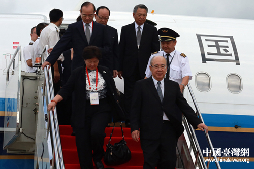 7月27日14時許,中國國民黨榮譽主席吳伯雄率團抵達哈爾濱。(中國臺灣網(wǎng) 陳佳慧 攝)