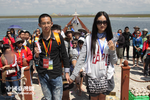 中國臺灣網7月29日海北消息 “青海湖畔共歡舞,兩岸水聚海峽情”,28日,參加第五屆中華文化快車兩岸青少年交流營的京臺兩地師生來到美麗的青海湖畔,舉行兩岸水樣的融合儀式。