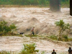 彰化市1名身分不詳男子昨天下午涉水,硬闖已拉起警戒線的彰南路三段一巷,路人高聲勸阻“危險,不要走!”男子不聽,接著一個踉蹌就被大水沖走,尚無消息。