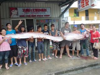 中國(guó)臺(tái)灣網(wǎng)8月7日消息 據(jù)臺(tái)灣“中央社”報(bào)道,臺(tái)灣花蓮縣秀林鄉(xiāng)遭“蘇拉”臺(tái)風(fēng)侵襲,正在復(fù)原中,海邊的加灣小區(qū)出現(xiàn)俗稱地震魚的勒氏皇帶魚,11名居民扛回長(zhǎng)達(dá)4米、重約59千克的地震魚分給小區(qū)鄰居加菜。