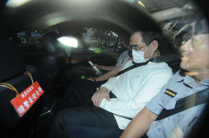 法庭特偵組約談林益世涉貪案,林益世(右二)離去。來(lái)源:臺(tái)灣媒體