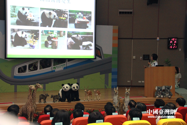 陳云林夫婦及江丙坤夫婦聽取動(dòng)物園方面關(guān)于熊貓保育工作的報(bào)告會(huì)(中國(guó)臺(tái)灣網(wǎng) 李徽 攝)