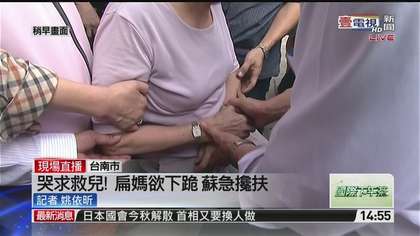 陳水扁母親向蘇貞昌下跪,求他救陳水扁。來源:臺灣媒體