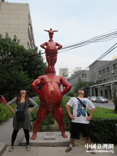 兩岸學(xué)子在798搞怪留念。(中國臺灣網(wǎng) 吳曉寒 攝)