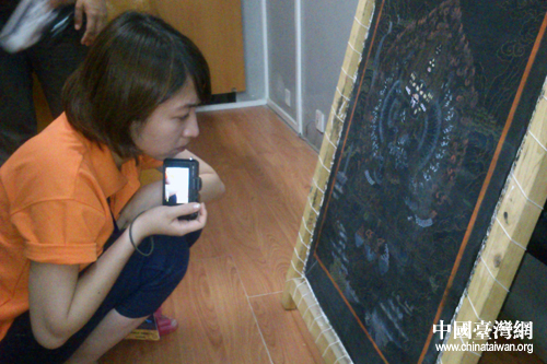 臺(tái)灣學(xué)子親密“接觸”唐卡。(中國(guó)臺(tái)灣網(wǎng) 張潔 攝)