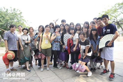 8月13日,由宋慶齡基金會和臺灣“十大杰出青年基金會”共同組織的“臺灣青年學生交流團”一行游覽蘇州,圖為團員在同里古鎮(zhèn)合影留念。(中國臺灣網(wǎng) 孟雅詩 攝)