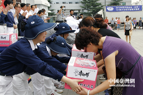 在捐獻(xiàn)儀式上,部分災(zāi)民流下了感動(dòng)的淚水。(中國(guó)臺(tái)灣網(wǎng) 馬迪 攝) 第1頁(yè)第2頁(yè)第3頁(yè)