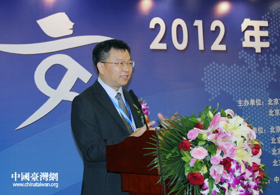 臺(tái)灣宜蘭大學(xué)校長(zhǎng)趙涵捷出席開幕式,并代表前來參會(huì)的臺(tái)灣測(cè)繪專業(yè)代表團(tuán)發(fā)表致辭。(中國臺(tái)灣網(wǎng) 王思羽 攝)