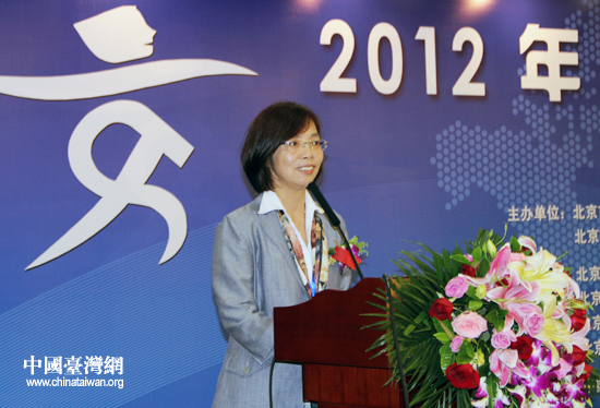 臺(tái)灣景觀學(xué)會(huì)理事長(zhǎng)李素馨出席開幕式,并代表前來參會(huì)的臺(tái)灣園林專業(yè)代表團(tuán)發(fā)表致辭。(中國臺(tái)灣網(wǎng) 王思羽 攝)