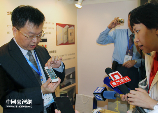 王志文現(xiàn)場演示“搶鮮機”。(中國臺灣網(wǎng) 王思羽 攝)