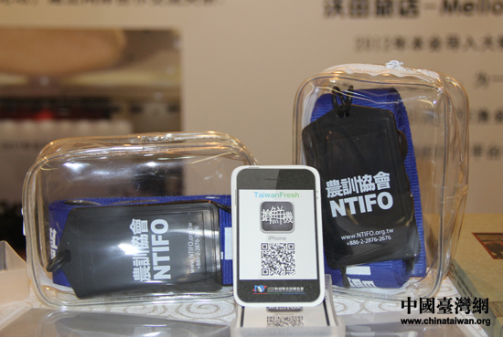 臺灣農(nóng)訓(xùn)協(xié)會精心制作的“搶鮮機”宣傳卡,只需用手機掃描二維碼,即可輕松下載軟件。(中國臺灣網(wǎng) 王思羽 攝)