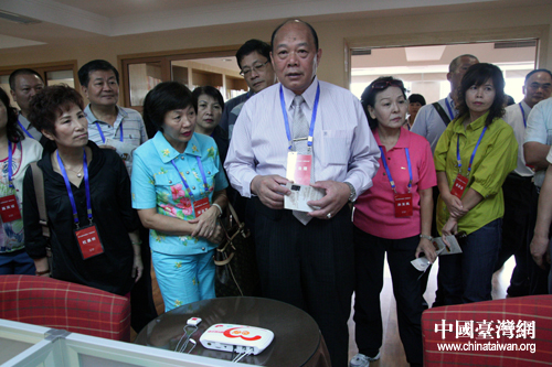 在錦江區(qū)“長(zhǎng)者通”呼援中心,臺(tái)灣嘉賓試用“長(zhǎng)者通”體驗(yàn)機(jī)。(中國臺(tái)灣網(wǎng) 王怡然 攝)