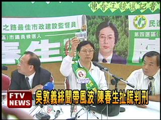 1998年吳敦義參選高雄市長(zhǎng)期間,當(dāng)時(shí)高雄市議員候選人陳春生公布吳敦義緋聞錄音帶,被吳敦義提告后判刑6月、緩刑定讞。2006年底及2008年間,陳春生卻又對(duì)外聲稱緋聞錄音帶是謝長(zhǎng)廷交給他。曾擔(dān)任謝長(zhǎng)廷市府參事的林宏明,也出庭作證附和陳春生說法。