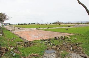 椰油小學(xué)操場(chǎng)布滿被大浪沖上岸的礫石,很像一個(gè)個(gè)大小不一的“彈坑”。來(lái)源:臺(tái)灣《聯(lián)合報(bào)》