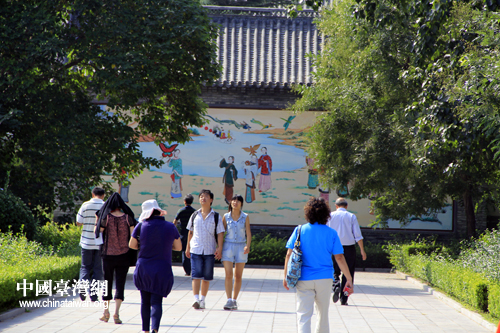 2012年海外臺(tái)商齊魯行活動(dòng)2日上午在山東濰坊繼續(xù)進(jìn)行,海外臺(tái)商參觀楊家埠民俗藝術(shù)大觀園后合影。(中國(guó)臺(tái)灣網(wǎng) 楊麗 攝)