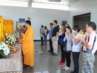 罹難的機組員家屬在臨時靈堂念經(jīng)吊慰死者。圖片來自臺媒