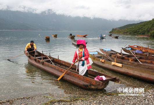 瀘沽湖畔泛舟 (中國臺灣網記者 張曉靜 攝)