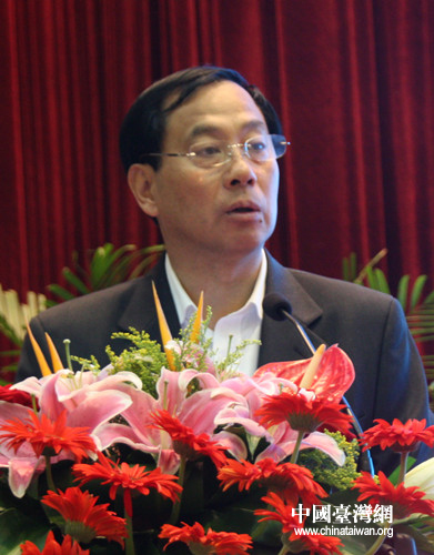 農(nóng)業(yè)部總經(jīng)濟師、海峽兩岸農(nóng)業(yè)交流協(xié)會會長陳萌山在閉幕式上做大會總結(jié)。(中國臺灣網(wǎng) 郭瑩瑩 攝)