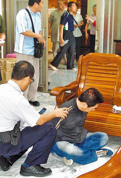 陳男一見住持,二話不說掏出手槍,朝住持連開兩槍,第一槍打中住持右手臂及肚子,第二槍卡彈,當(dāng)時在廳旁的住持司機(jī)何其霖聽到槍聲沖入廳內(nèi),抓住陳手臂,并朝陳頭部砸擊,待槍枝被打落后,雙方一陣扭打,陳不敵被制伏,警據(jù)報(bào)趕到,查扣陳所拿的改造手槍,彈匣內(nèi)有9發(fā)子彈。