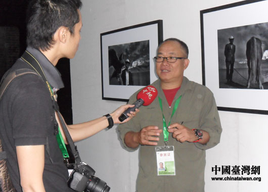 臺灣中視記者采訪臺灣攝影大師林添福先生。(中國臺灣網 郭慶娜 攝)