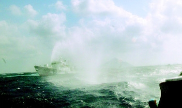 臺灣南方澳漁民發(fā)起“求生存、護(hù)漁權(quán)”活動,81艘漁船前往釣魚島護(hù)漁,昨天上午挺進(jìn)距釣魚島僅2.1海里,日本出動40多艘巡邏艦阻擋,向漁船噴水,并廣播要漁民離開;漁民回嗆“滾回日本”,不退讓,臺“海巡署”巡防艦也強(qiáng)硬“回噴”,雙方對峙。漁船在海上宣示后,昨晚返港。
