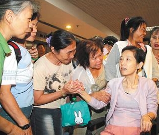 前臺灣地區(qū)領(lǐng)導(dǎo)人陳水扁到臺北榮總戒護(hù)就醫(yī),陳水扁妻子吳淑珍(右)北上探視。圖片來源:臺灣《聯(lián)合報(bào)》