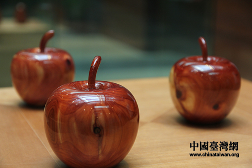 阿里山檜木雕塑作品——平平安安。(中國(guó)臺(tái)灣網(wǎng) 馬迪 攝)