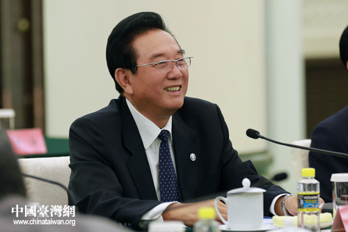 16日晚,海協(xié)會會長陳云林會見了首次來大陸的;鶗氯味麻L林中森一行,圖為林中森。(中國臺灣網(wǎng) 陳佳慧 攝)