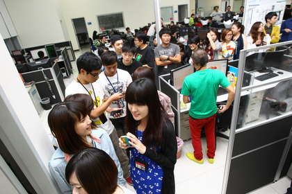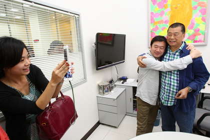 辦公室內(nèi)外大排長龍等著黎智英簽名合照。圖片來源:臺灣媒體