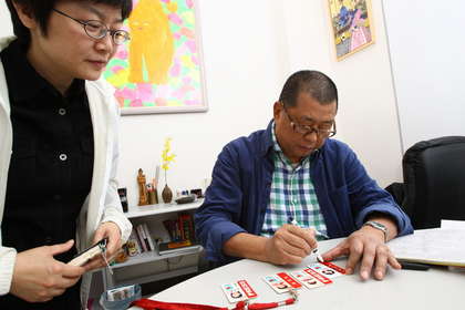 黎智英下班前與員工合照簽名,在辦公室里造成騷動。圖片來源:臺灣媒體
