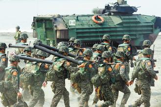 臺“立院”預算中心報告點出,臺軍面臨募不到兵、超過6成的志愿役士兵期滿不愿留營的憂慮。圖為兩年前臺軍海軍陸戰(zhàn)隊兩棲突擊車演練。圖片來源:臺灣《聯(lián)合報》資料照片