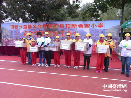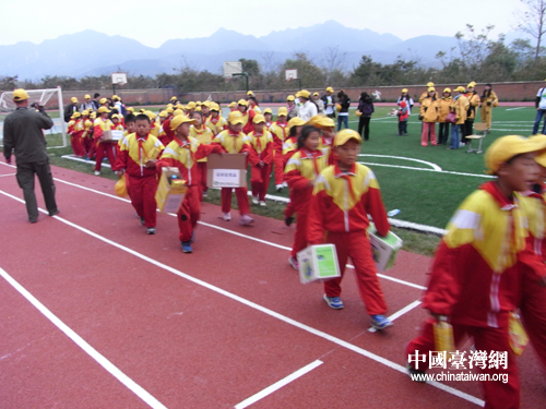 看,我們得了這么多運動會的獎品,都是頂新公益基金會提供的(中國臺灣網(wǎng)記者 蕪?fù)瑪z)