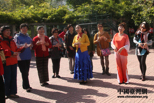 兩岸社區(qū)工作者即興進(jìn)行了歌舞合演《愛(ài)在人間天堂》。(中國(guó)臺(tái)灣網(wǎng) 郭瑩瑩 攝)