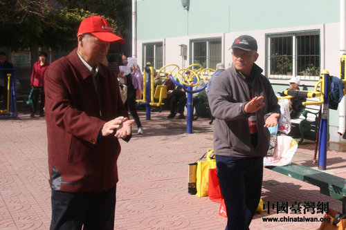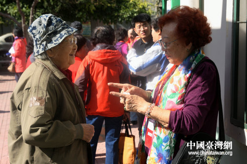 來自臺灣的徐俊梅女士與天津的溫先廉女士,在天塔街氣象南里社區(qū)偶遇,發(fā)現竟然都是陜西省五臺縣人,二人用家鄉(xiāng)話攀談起來。(中國臺灣網 郭瑩瑩 攝)