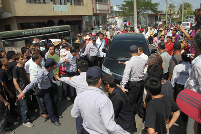 蘇治芬見群眾不理性隨即驅(qū)車離開,未料座車遭竟阻擋,經(jīng)警方出面始得座車離開,此時黑衣人再度出面強行阻擋,致現(xiàn)場發(fā)生激烈沖突,蘇治芬座車遭猛踹,司機(jī)及隨扈遭拉扯,導(dǎo)致2人受傷。云林縣府強烈譴責(zé)暴力,要求警方依法究辦。