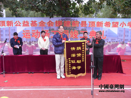 頂新希望小學(xué)王學(xué)文校長代表全校師生向頂新基金會(huì)回贈(zèng)了感謝錦旗,上書“捐資助學(xué) 情深似! (中國臺(tái)灣網(wǎng)記者 蕪?fù)瑪z)