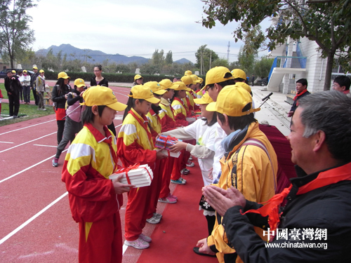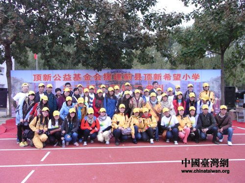 頂新公益基金會暨頂新集團部分同仁在希望小學(xué)合影(中國臺灣網(wǎng)記者 蕪?fù)瑪z)