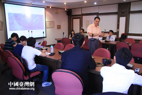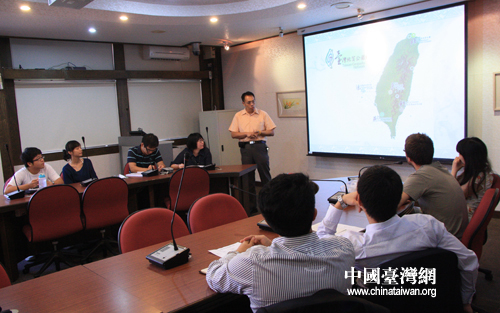臺(tái)南大學(xué)張伯宇主任為大陸青年赴臺(tái)交流團(tuán)介紹臺(tái)灣地理情況(中國臺(tái)灣網(wǎng) 王文英 攝)