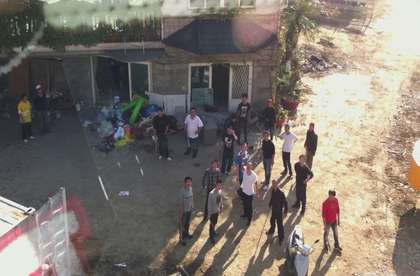 新竹新埔鎮(zhèn)鎮(zhèn)代會(huì)王姓主席,不滿拆遷戶私下找承包商拆屋,派多名手持棍棒的手下到場(chǎng),厲聲要求民眾下樓談話。(圖片來自臺(tái)媒)