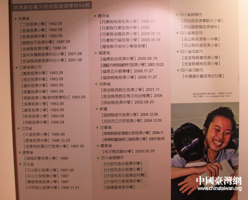 慈濟援建大陸的54學(xué)校列表(中國臺灣網(wǎng) 王文英 攝)