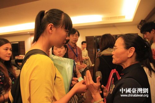 慈濟基金會方金香為大陸青年大學(xué)生解釋靜思語的含義副本(中國臺灣網(wǎng) 王文英 攝)