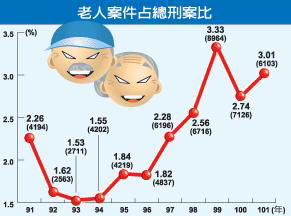 臺灣老年人犯罪比率圖(圖片來源:臺灣《聯合報》)