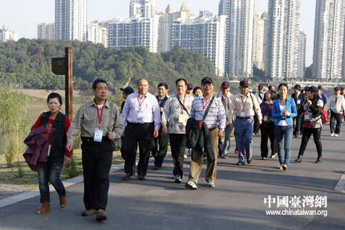 臺灣信眾漫步株洲市湘江風光帶,領(lǐng)略湘江風光 。(中國臺灣網(wǎng) 陳睿 攝)